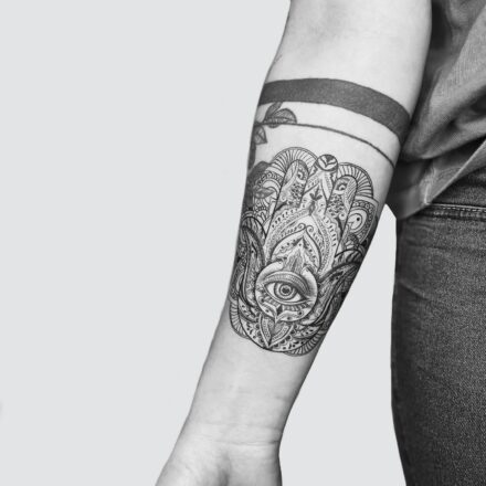 Tetování znaky a symboly, Hamsa, oko na předloktí