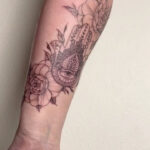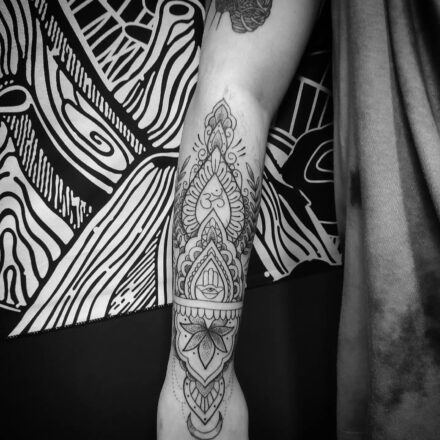 Tetování znaky a symboly, hamsa s květinami na předloktí