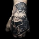 Tetování znaky a symboly, helma na hřbetu ruky