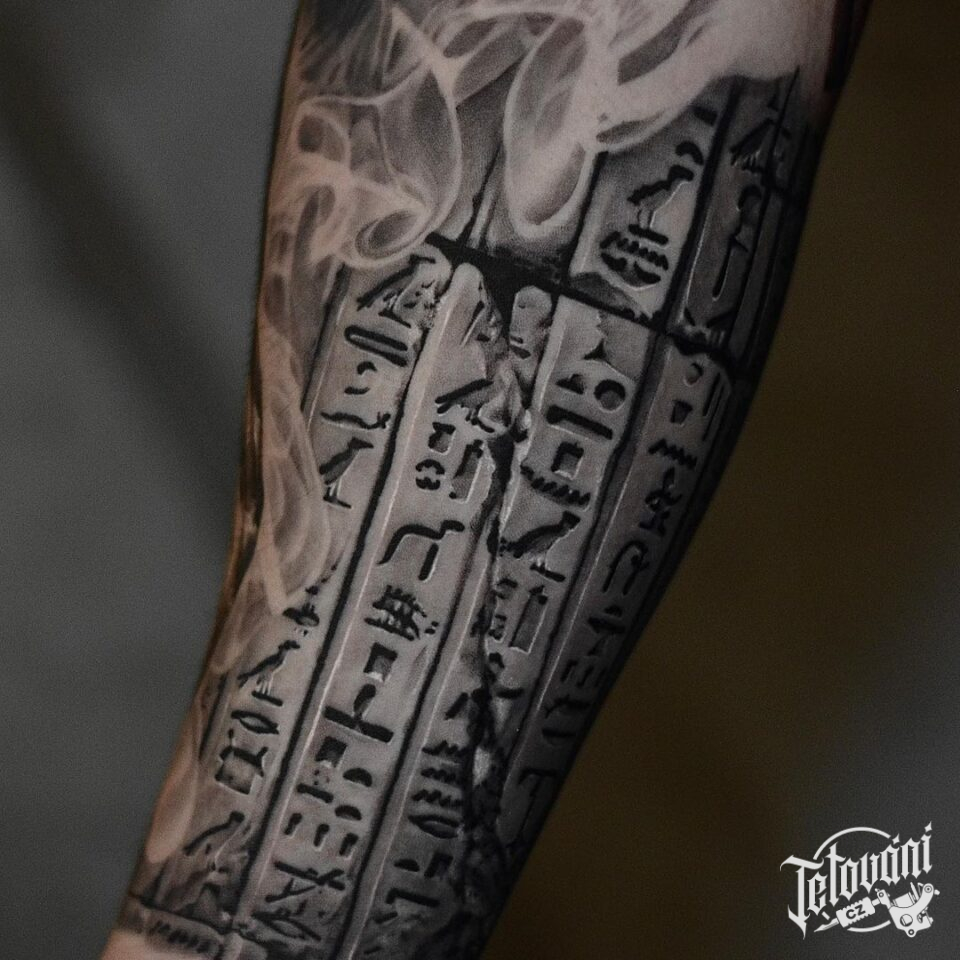 Tetování znaky a symboly, hieroglyfy na předloktí