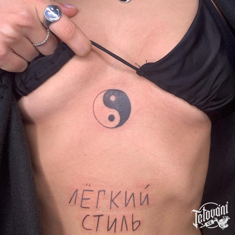 Tetování znaky a symboly, jin a jang mezi prsa