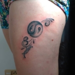 Tetování znaky a symboly Jin a Jang na bok stehna