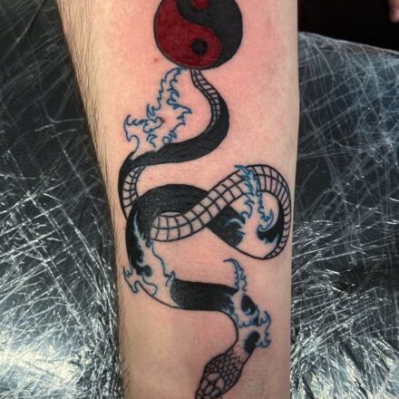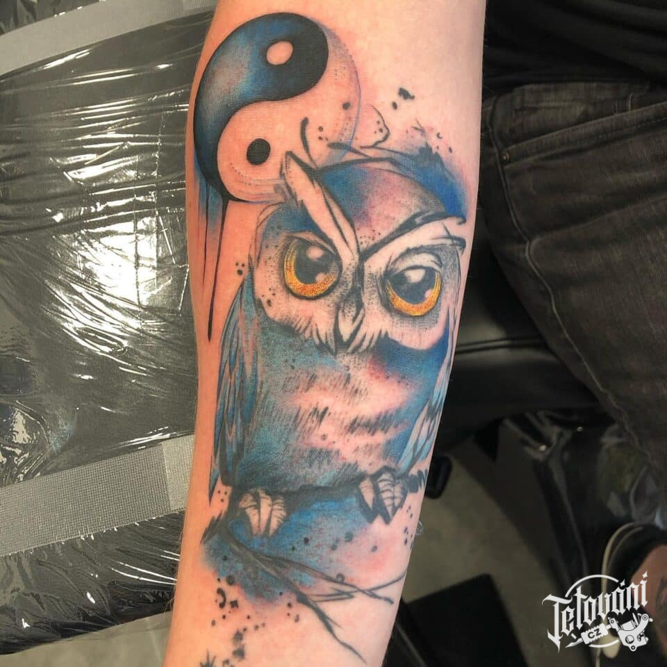 Tetování znaky a symboly, jin a jang, sova na předloktí