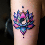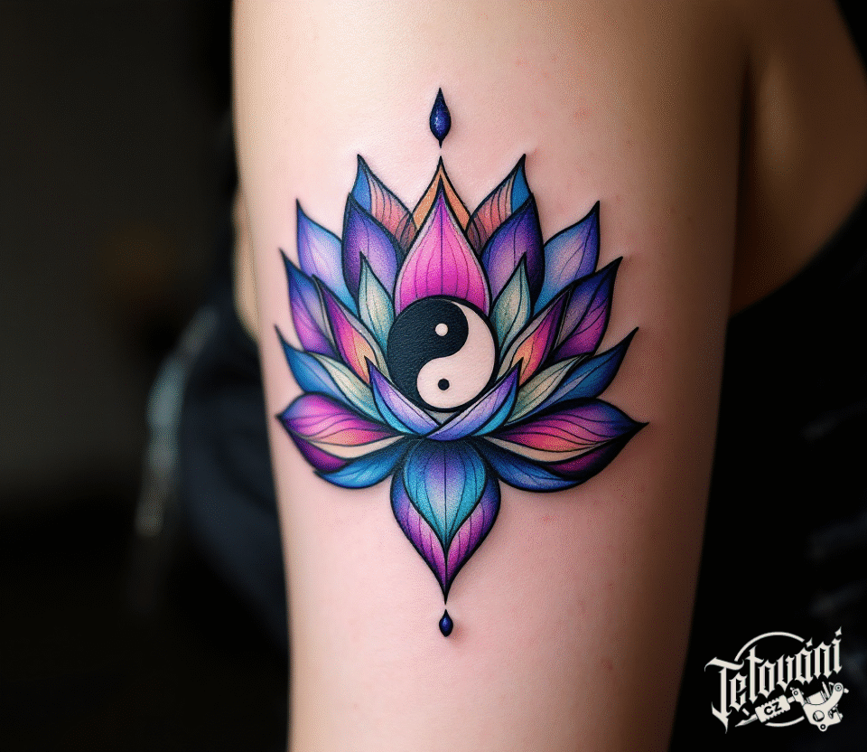 Tetování znaky a symboly, jin a jang v lotusu, karma na ruce