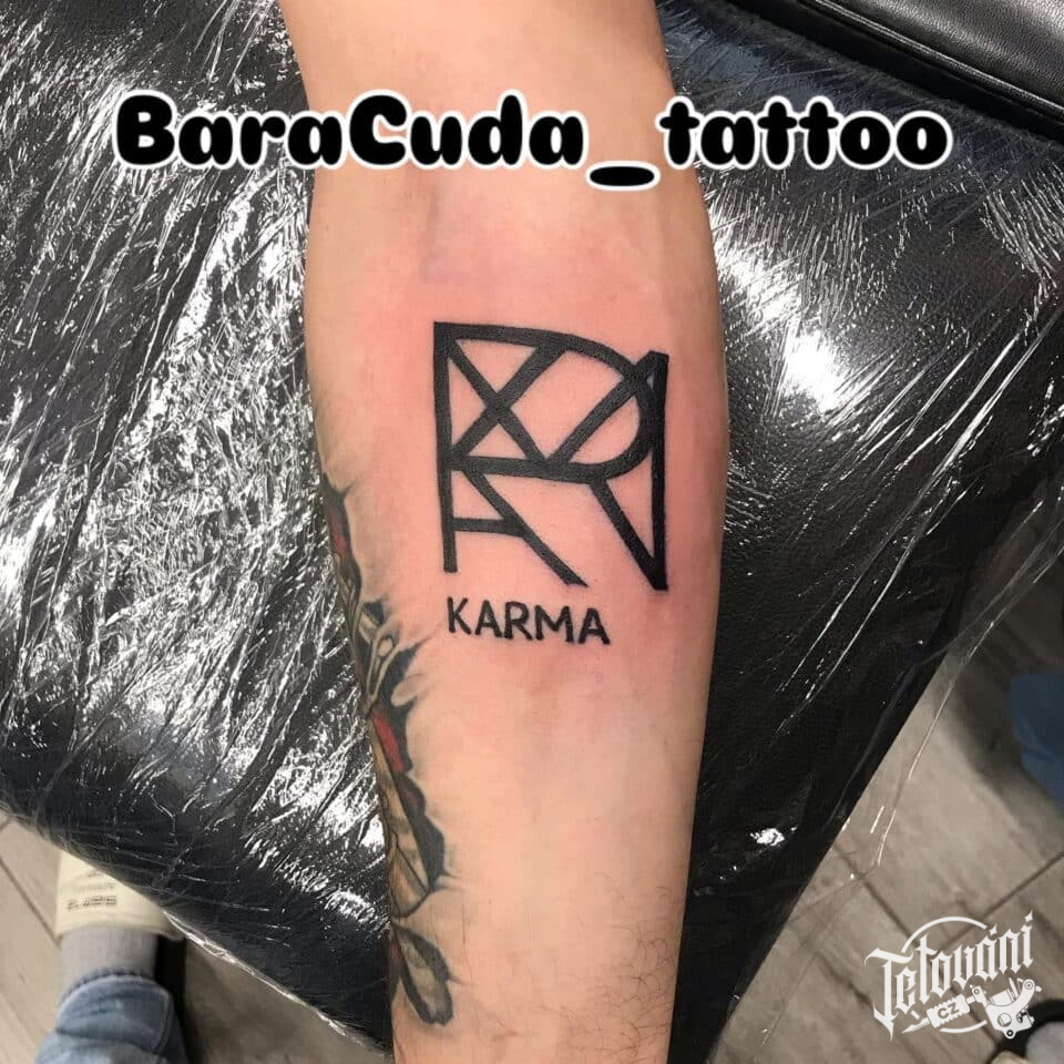 Tetování znaky a symboly karma, nápis, písmo na předloktí