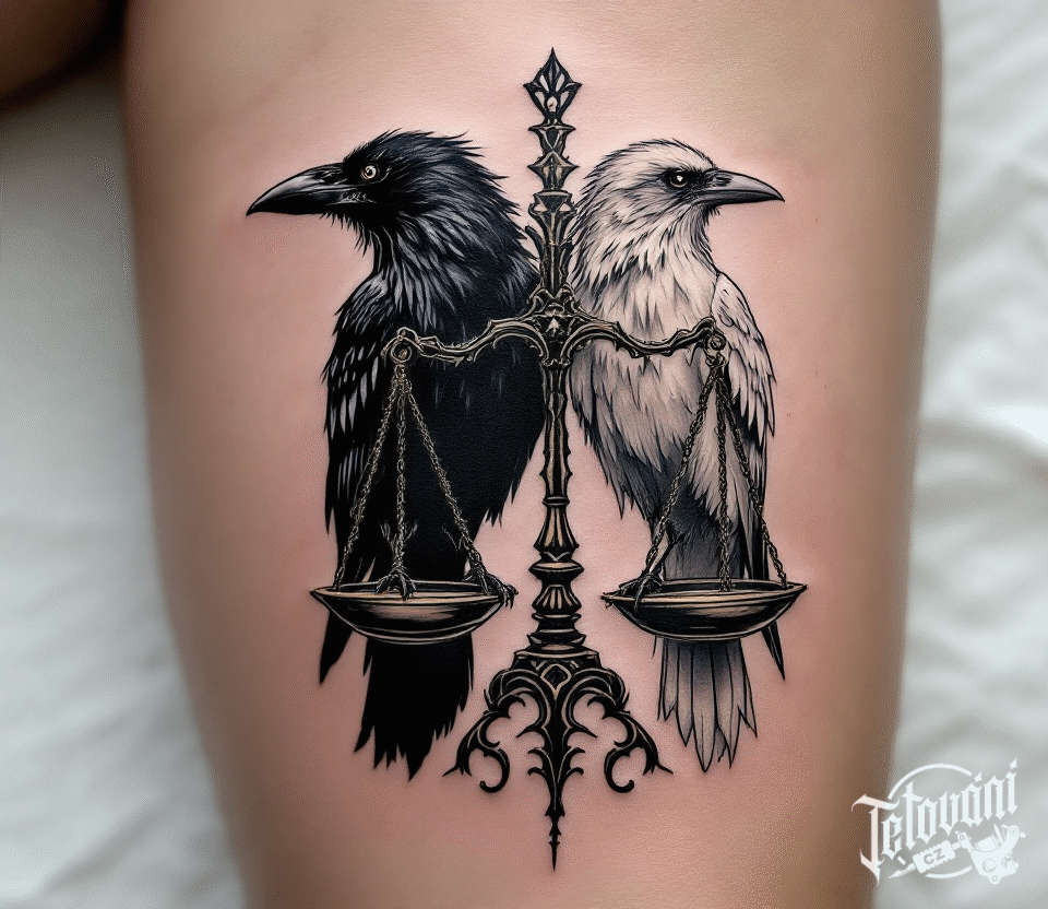 Tetování znaky a symboly, karma, zvířata, ptáci, váhy na lýtku