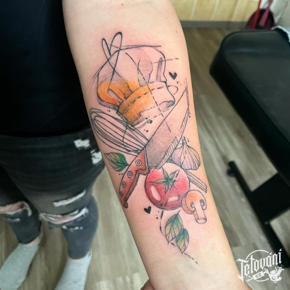 Tetování znaky a symboly kuchaře na předloktí