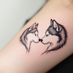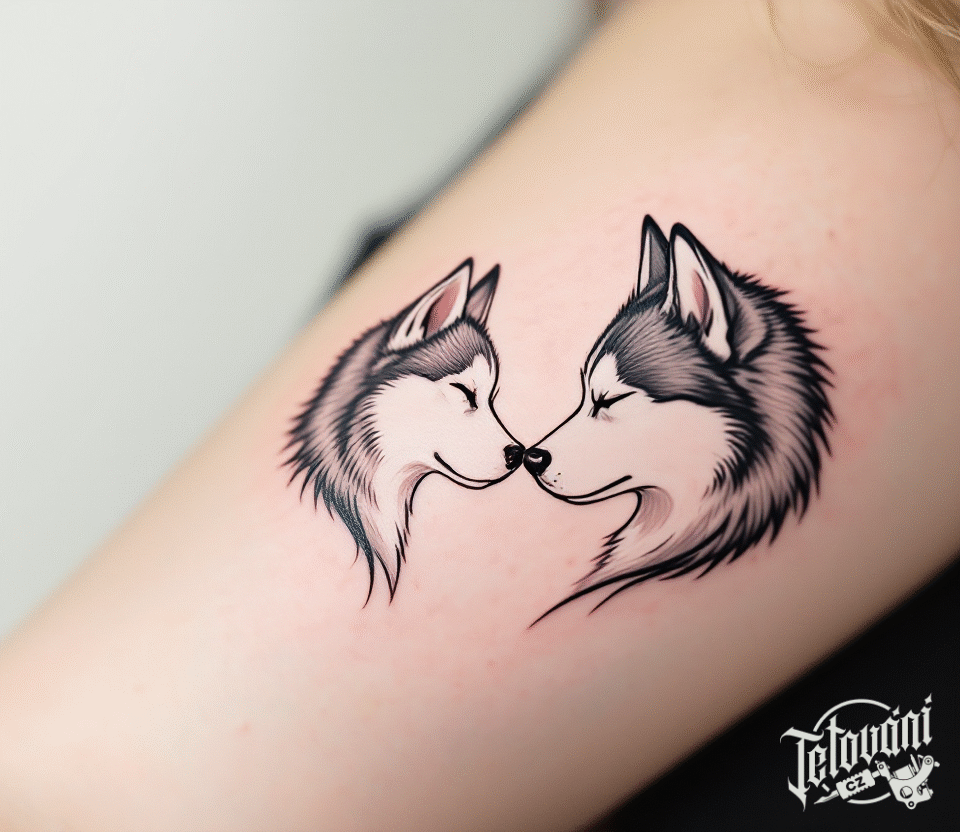 Tetování znaky a symboly lásky, psi husky na předloktí