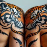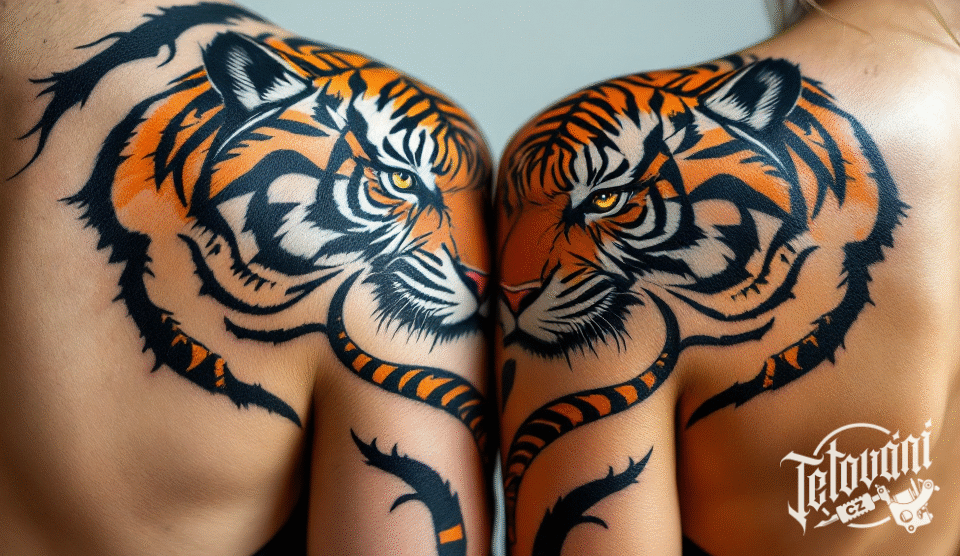 Tetování znaky a symboly lásky, rodiny, zvíře tygr, otec a dítě, rodokmen na rameno