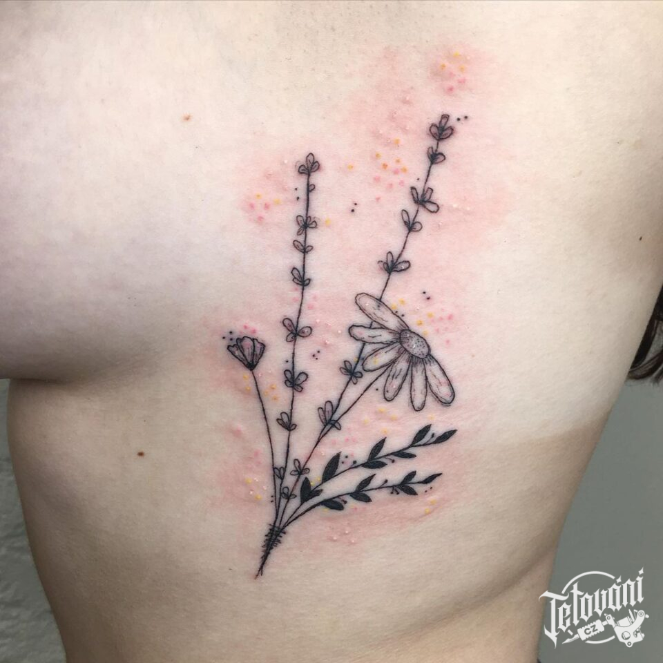Tetování znaky a symboly, luční kvítí na bok žeber