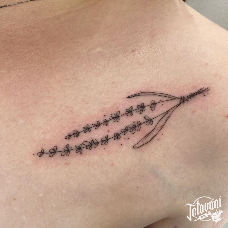 Tetování znaky a symboly luční kvítí pod klíční kost