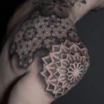 Tetování znaky a symboly, mandala, ornamenty na lopatku a rameno