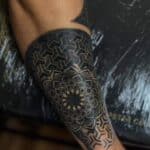 Tetování znaky a symboly, mandala, ornamenty na na předloktí a paži