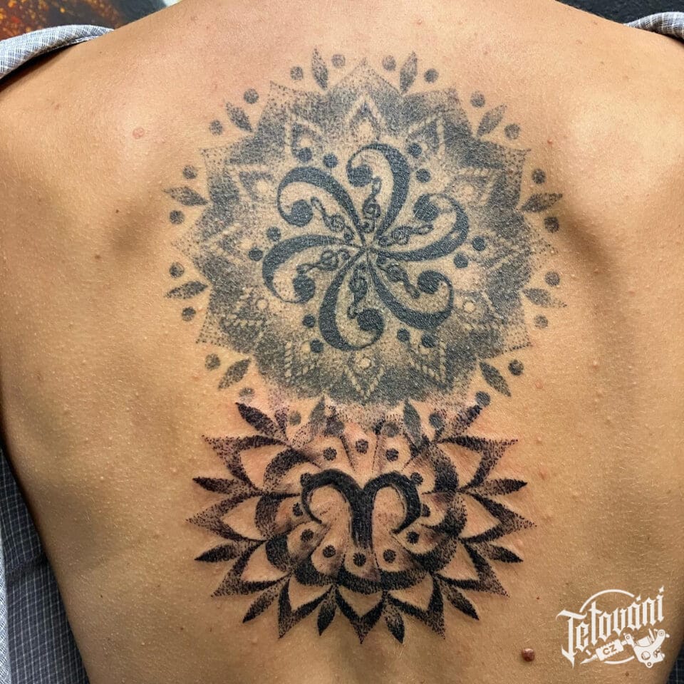 Tetování znaky a symboly, mandaly na zádech