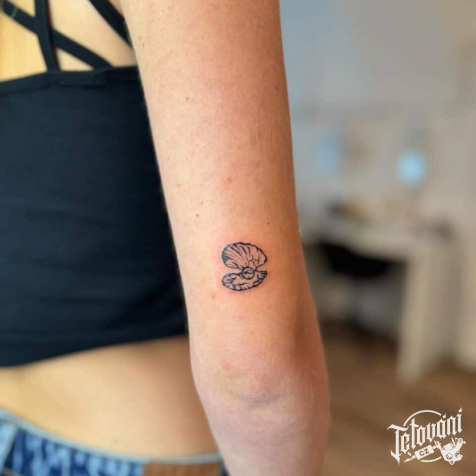 Tetování znaky a symboly, mušle na s perlou na paži
