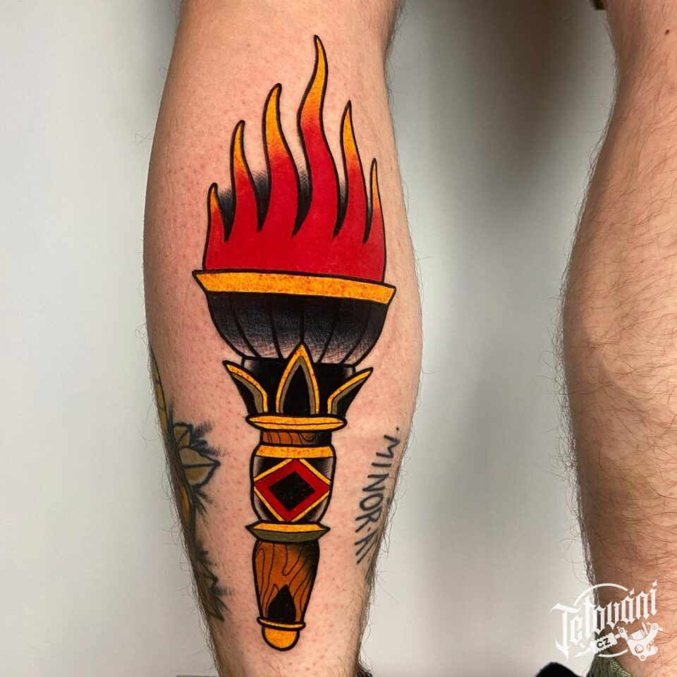 Tetování znaky a symboly na lýtku