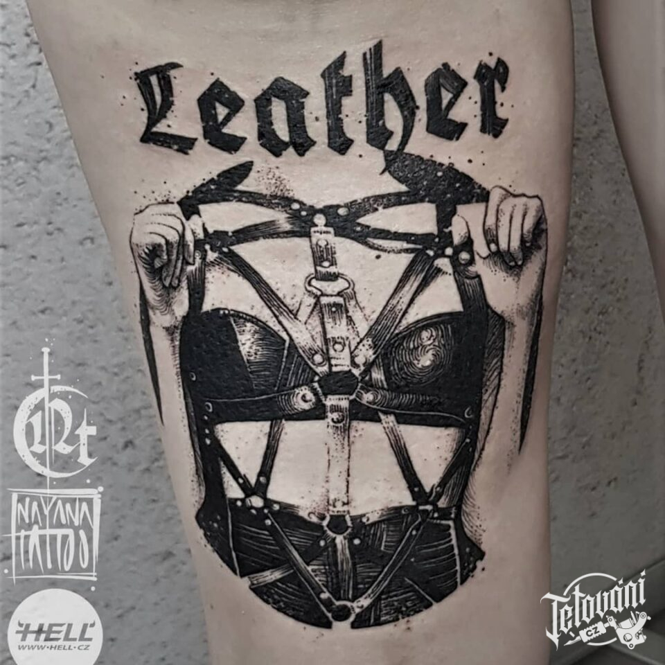 Tetování znaky a symboly na stehno
