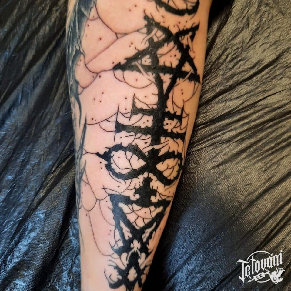 Tetování znaky a symboly, nápis na předloktí