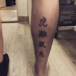Tetování znaky a symboly, nápisy a písmena na lýtko
