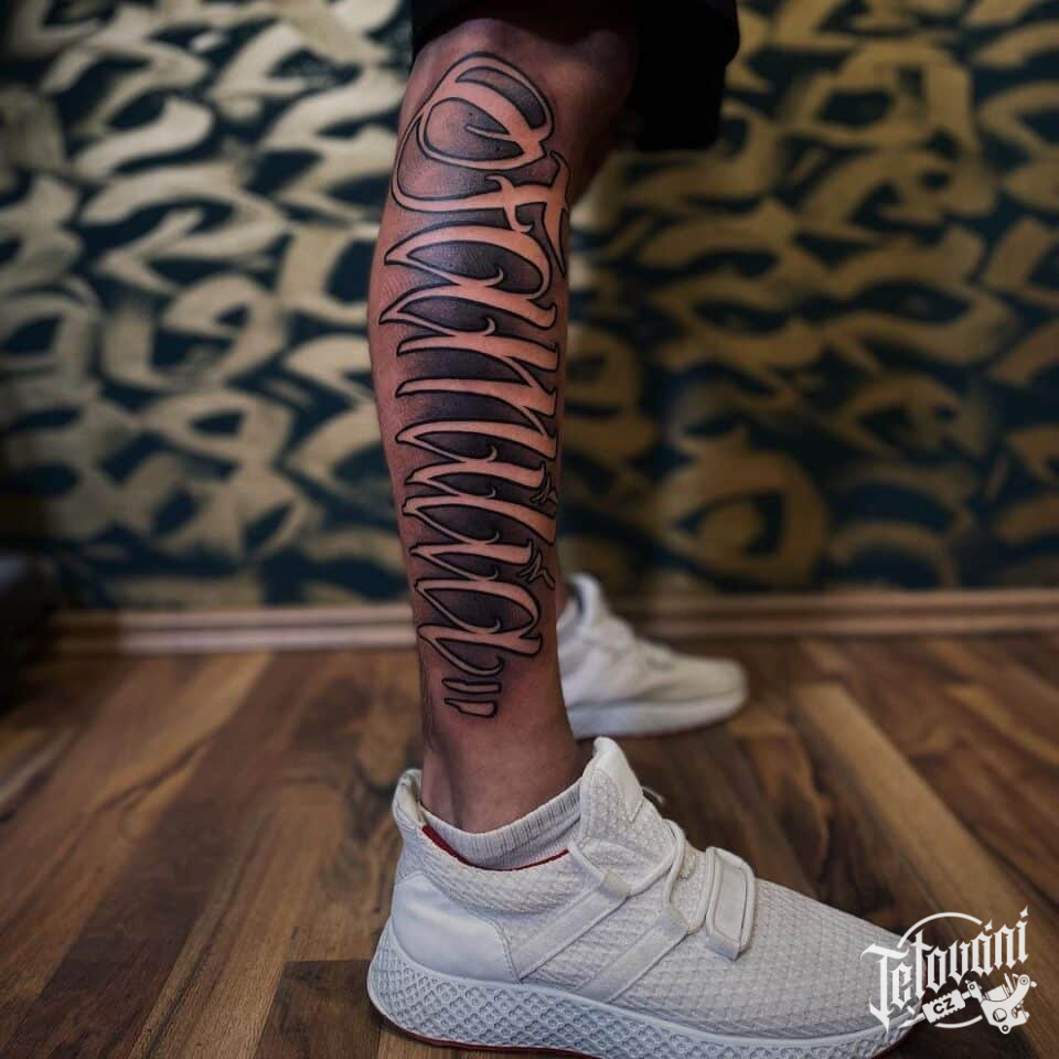 Tetování znaky a symboly, nápisy, citáty na lýtko