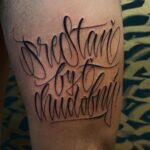 Tetování znaky a symboly, nápisy, citáty na stehno