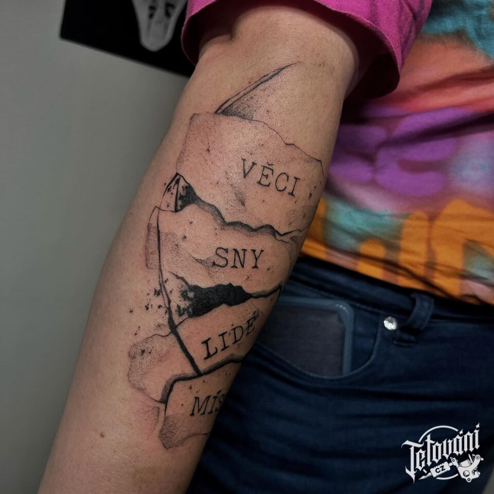 Tetování znaky a symboly, nápisy, citáty, písmena na předloktí