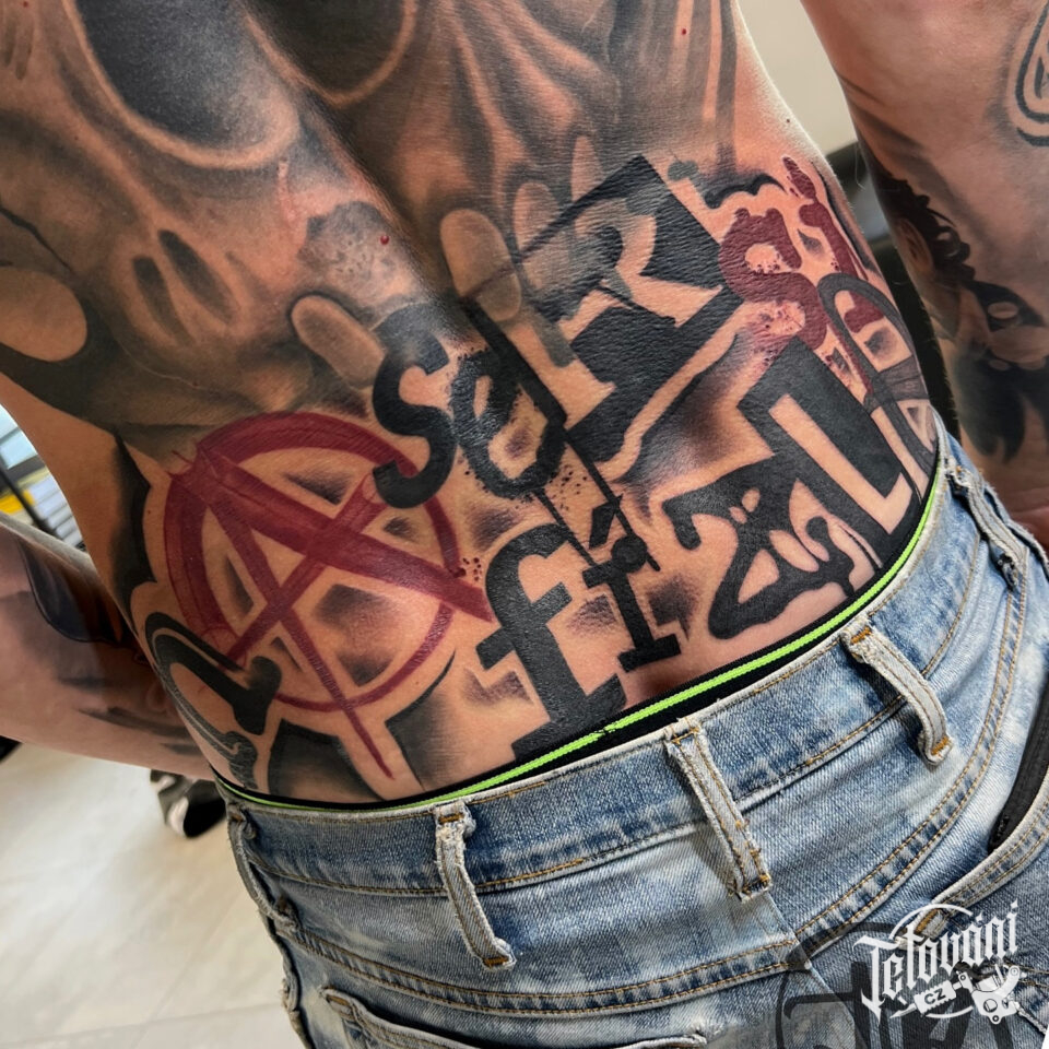 Tetování znaky a symboly, nápisy na záda