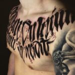 Tetování znaky a symboly, nápisy, písmena na hrudník