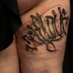 Tetování znaky a symboly, nápisy, písmena na stehno