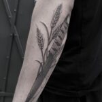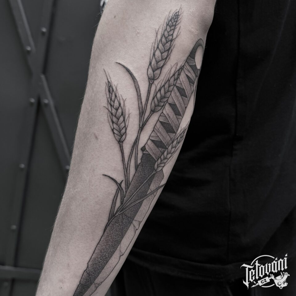 Tetování znaky a symboly, nůž, luční kvítí předloktí