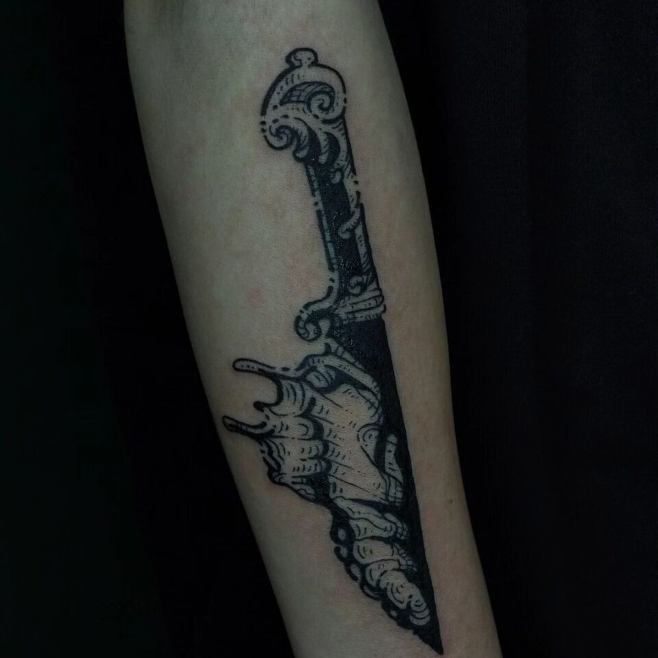 Tetování znaky a symboly, nůž na předloktí