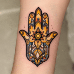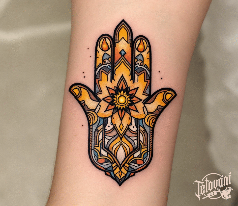 Tetování znaky a symboly, ornamentální hamsa na předloktí