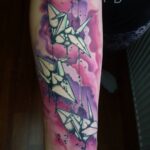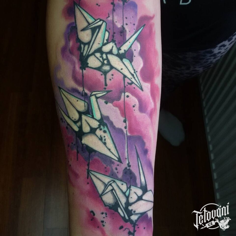 Tetování znaky a symboly, papírové vlaštovky na předloktí