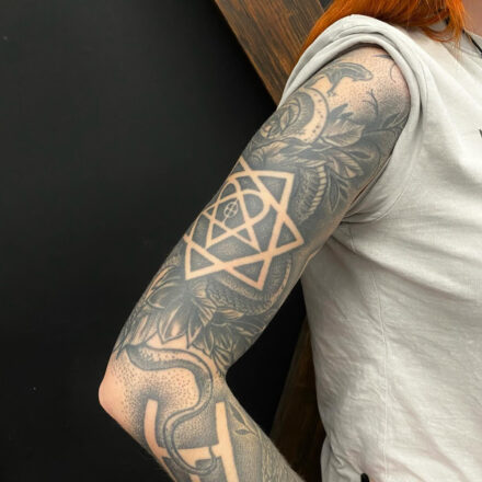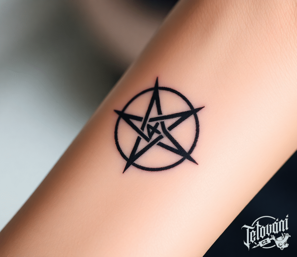 Tetování znaky a symboly, pentagram na předloktí