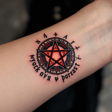 Tetování znaky a symboly, pentagram na rameni