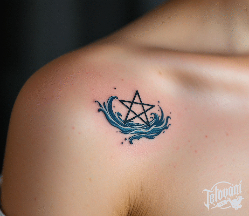 Tetování znaky a symboly, pentagram pod klíční kost