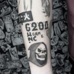 Tetování znaky a symboly, písmena, čísla, kostlivec na předloktí