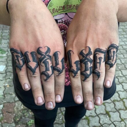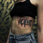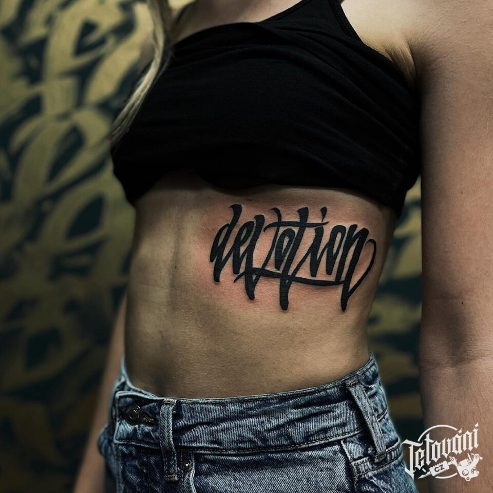 Tetování znaky a symboly, písmena, nápisy na bok žeber