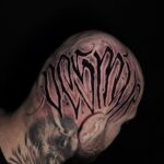 Tetování znaky a symboly, písmena, nápisy na hlavu