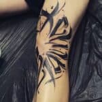 Tetování znaky a symboly, písmena, nápisy na koleno