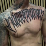 Tetování znaky a symboly, písmena, nápisy na prsa