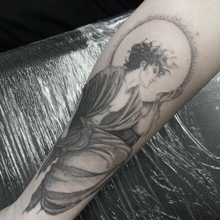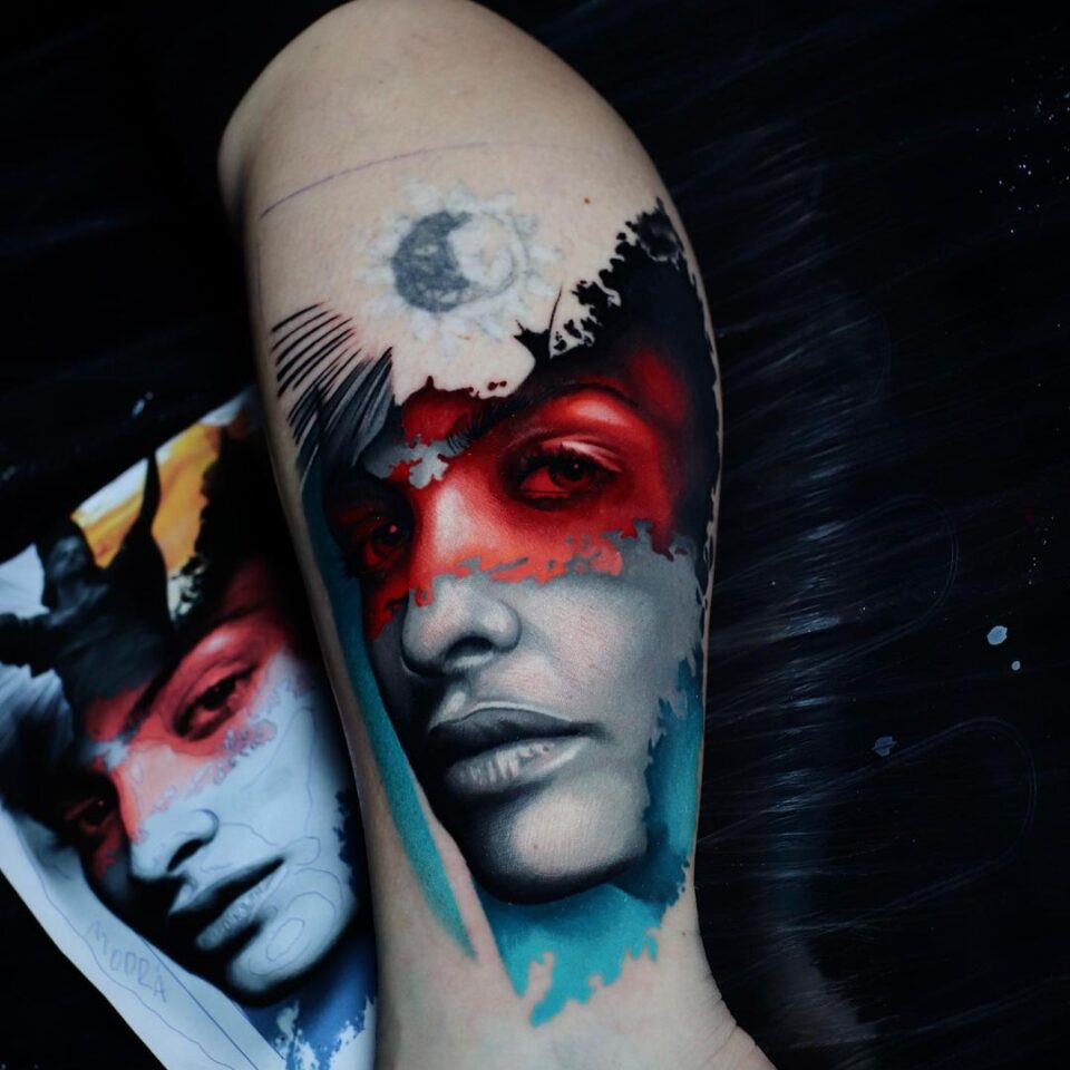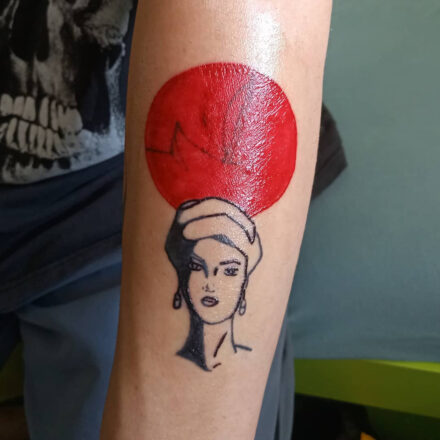 Tetování znaky a symboly, portrét, Slunce na stehno