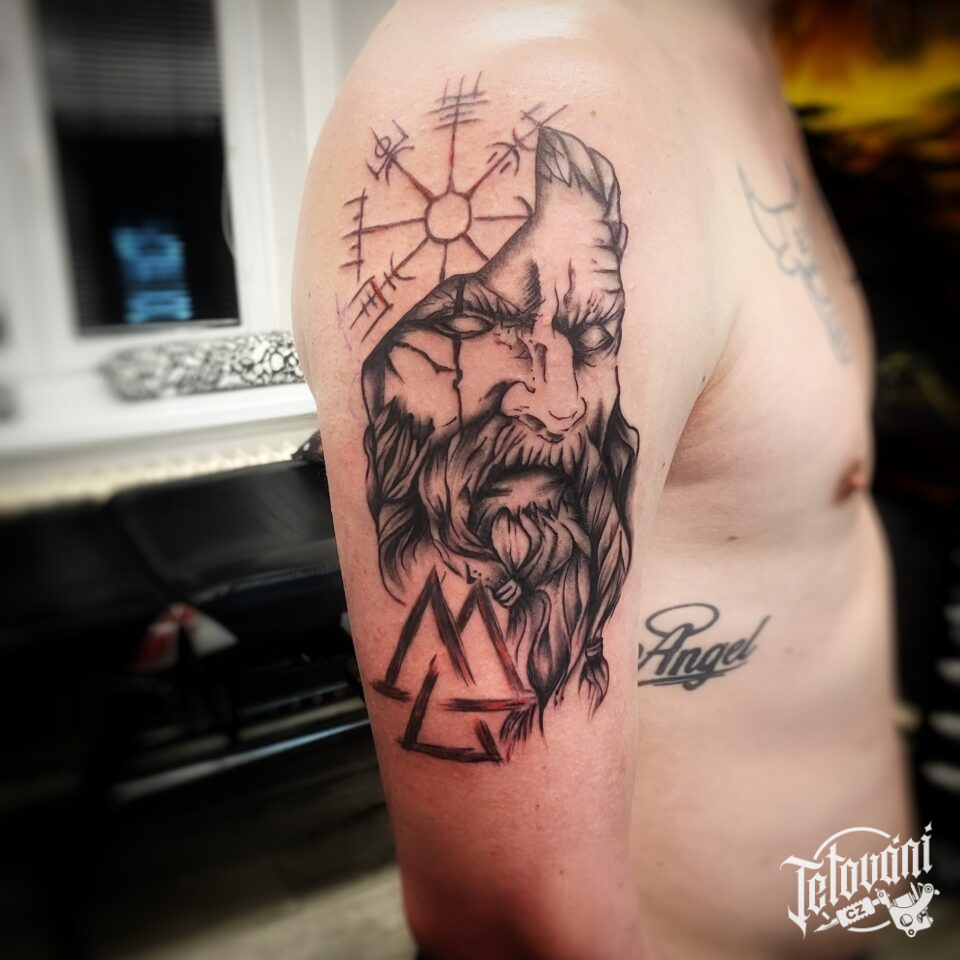 Tetování znaky a symboly, portrét vikinga na rameni
