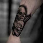 Tetování znaky a symboly, portréty, lebky na předloktí