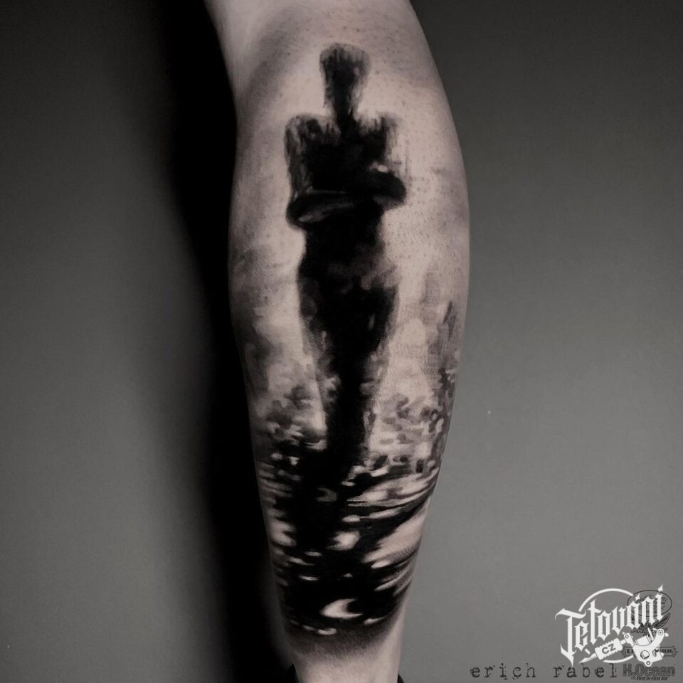 Tetování znaky a symboly, postavička na lýtku
