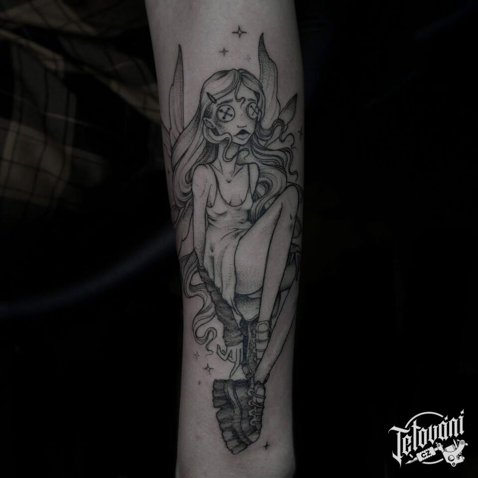 Tetování znaky a symboly, postavička ženy na ruce