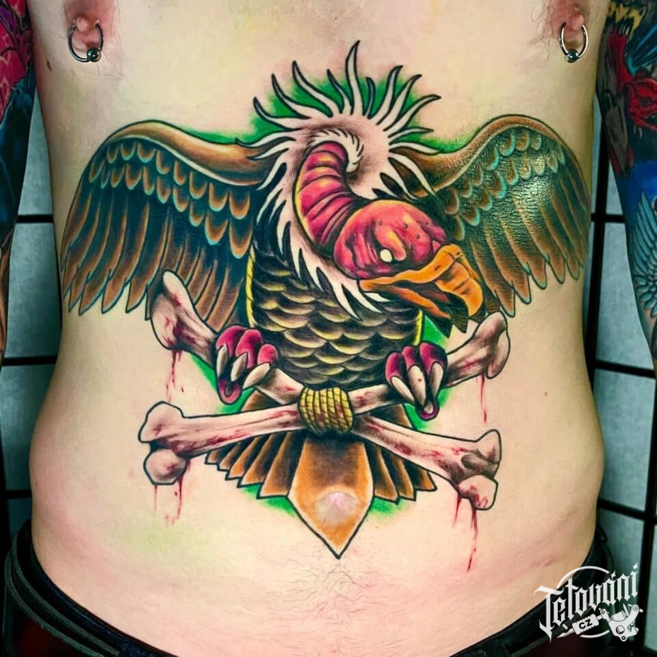 Tetování znaky a symboly, pták kondor, kosti na břicho