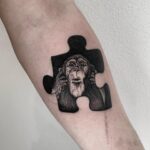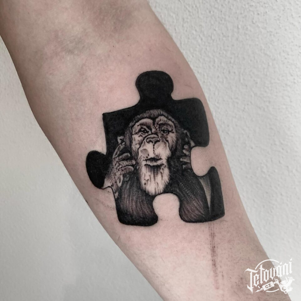 Tetování znaky a symboly puzzle, zvíře opice na předloktí