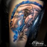 Tetování znaky a symboly, robot na bok stehna