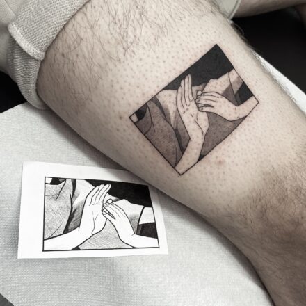 Tetování znaky a symboly, ruce na stehno